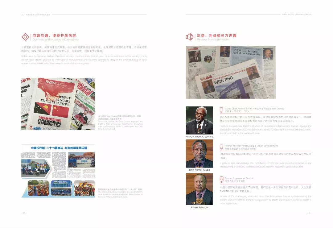 今天,《中建投巴新公司2021可持续发展报告》正式发布,这是中建材投资发布的首份海外社会责任报告。报告全面披露了中建材投资在巴布亚新几内亚(以下简称巴新)深耕近三十年,追求可持续发展的管理与实践。