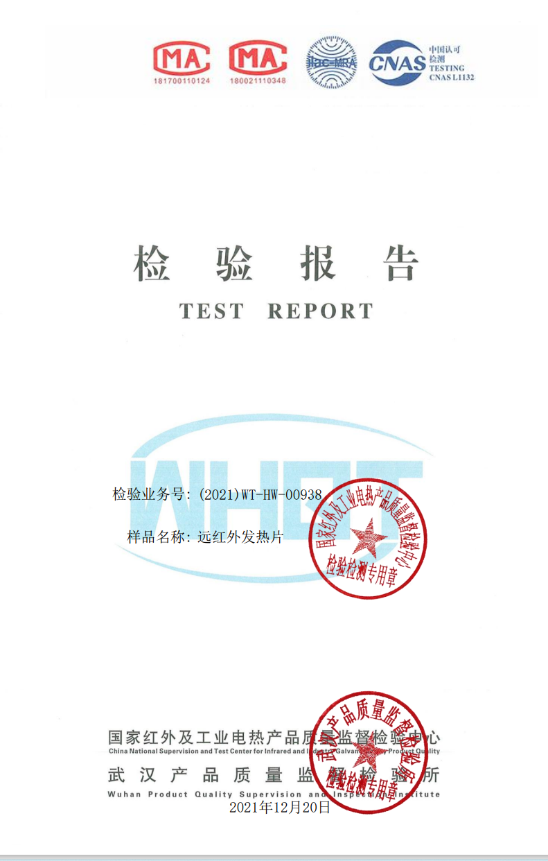 经过国家红外及工业质量监督检验中心检测,在通电情况下,石墨烯发热膜发出的4μm-16μm远红外“生命光波”,近似太阳光谱的远红外电热膜,能够促进血液循环、加速血液能量供给输送、改善循环系统等。这束神奇的“生命光波”与人体产生共振后被人体吸收,可使体内水分子产生共振,使水分子活化,增强其分子间的结合力,从而活化蛋白质等生物大分子,使生物体细胞处于最高振动能级。由于生物细胞产生共振效应,可将远红外热能传递到人体皮下较深的部分,以下深层温度上升,产生的温热由内向外散发。这种作用强度,使毛细血管扩张,促进血液循环,强化各组织之间的新陈代谢,改善循环系统,增加组织的再生能力,提高机体的免疫能力。