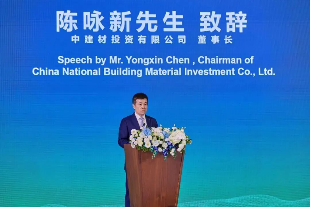 陈咏新在致辞中介绍了中建材投资公司致力于全球材料集采供应链建设,向绿色低碳新材料、智慧交通领域进行属地资源开发服务,在全球21个国家设立42家海外仓+建材连锁超市,构建起海外全流程供应链体系,形成以属地化服务为核心的独特优势,助力中国技术、中国制造和中国品牌“走出去”。他提出倡议,呼吁与会各方强化资本合作与产业协同,共同拓展中东新能源、新材料市场机遇。