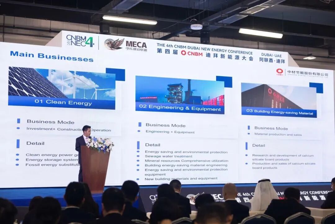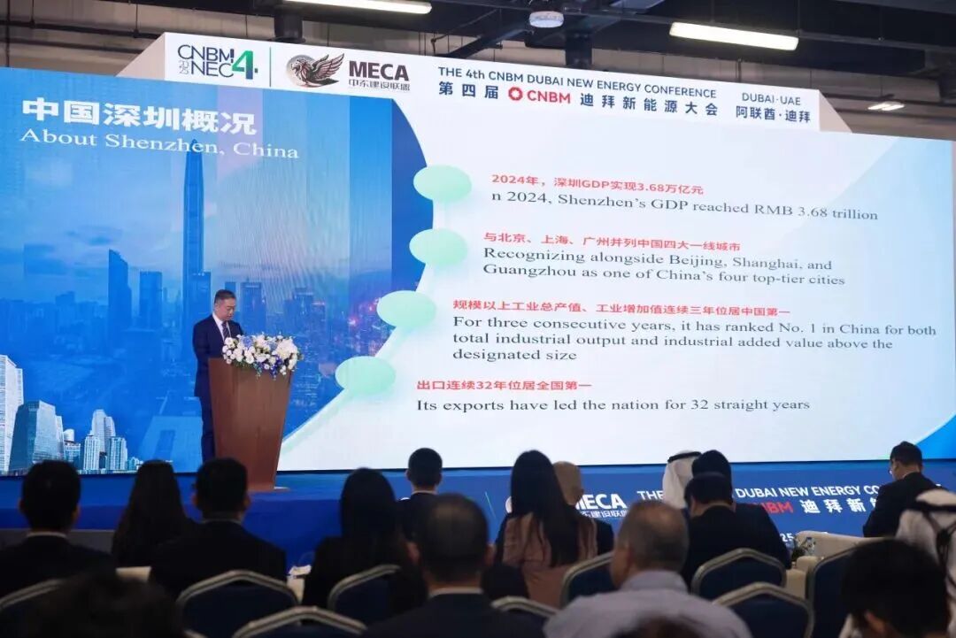 当地时间9月17日,由中建材投资所属中国建材国际中东北非公司主办的第四届CNBM迪拜新能源大会在迪拜杰贝阿里自贸区成功举办。大会以“新能源技术本土化·服务中东北非”为主题,首次采用“以会带展”的模式,在大会现场设立实体展区,20多家中阿企业进行集中展示,呈现中国新能源汽车、光伏系统、新型储能、微电网及低碳建材等领域的最新成果。中国建材集团副总经理王于猛、中建材投资董事长陈咏新、中国驻阿联酋大使馆经商参赞朱炼、深圳市副市长王卫出席大会并致辞,深圳市龙华区商务局局长钟建生、中建材海外总经理李韬、阿布扎比政府苏莱曼·法希姆、迪拜市政府建筑事务主管艾哈迈德·萨拉姆、迪拜民防局安全实验室主任塔玛拉·阿拉法特等300多名政商界代表到场参会、观展。