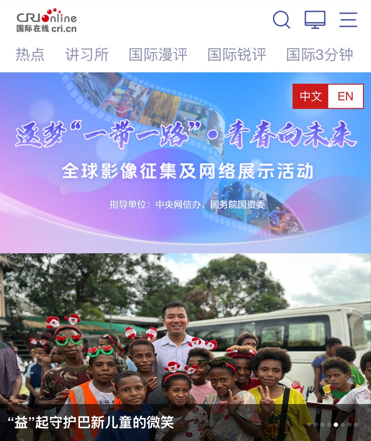 近日,中建投巴新公司深耕公益的暖心实践 ——“益” 起守护巴新儿童的微笑,在中央广播电视总台国际在线开展的 “逐梦‘一带一路’・青春向未来” 活动中入选精品图片作品目录,成为共建 “一带一路” 倡议下人文交流的生动注脚!
