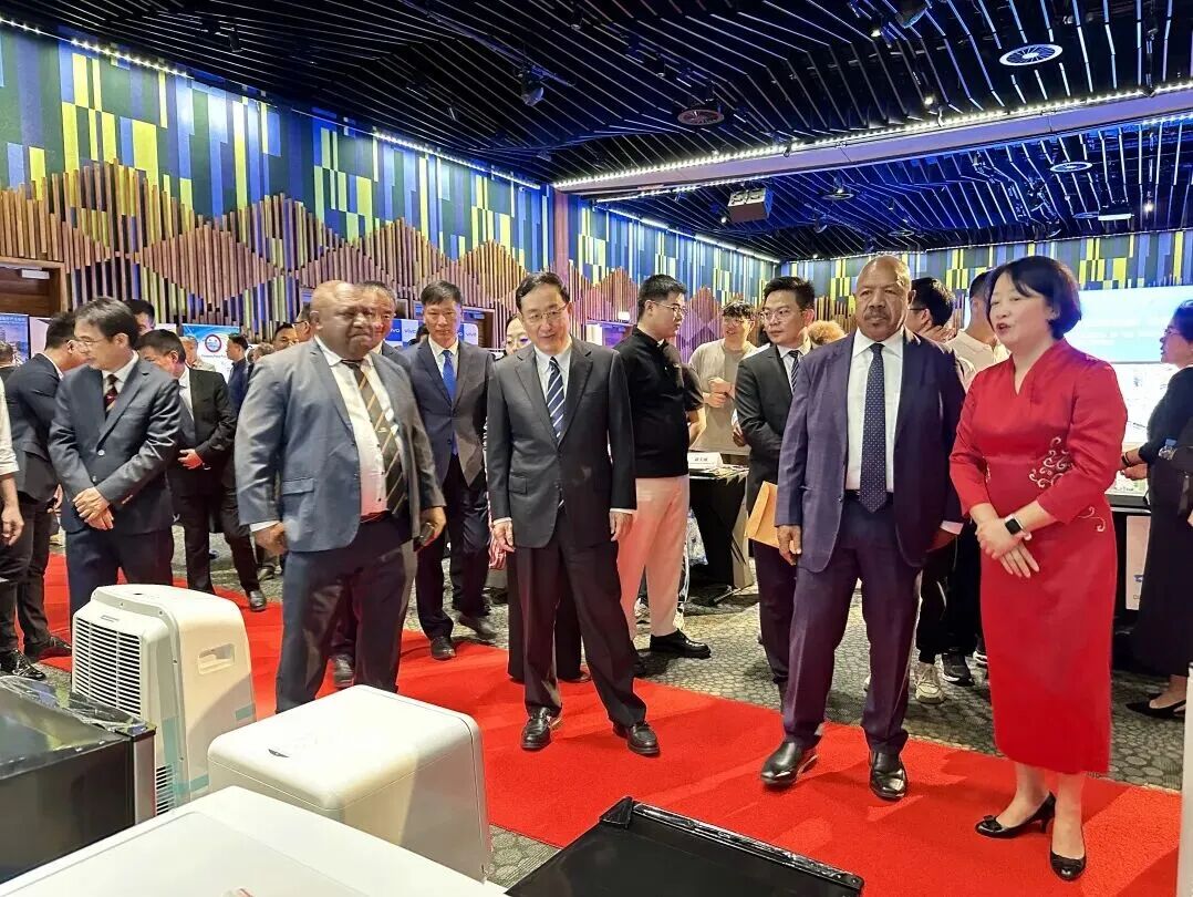 王曦一行在展会现场参观了巴新公司集中展示的家居电器、数字新能源、五金工具及体育用品等多品类优质商品,详细了解巴新公司业务布局,充分肯定了巴新公司以“建材家居超市”模式,将广东众多建材五金产品及家居家电一线品牌产品引入当地,进一步提升了广东品牌在当地市场的认知度。