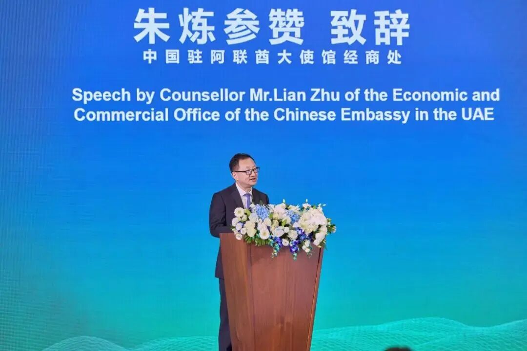 陈咏新在致辞中介绍了中建材投资公司致力于全球材料集采供应链建设,向绿色低碳新材料、智慧交通领域进行属地资源开发服务,在全球21个国家设立42家海外仓+建材连锁超市,构建起海外全流程供应链体系,形成以属地化服务为核心的独特优势,助力中国技术、中国制造和中国品牌“走出去”。他提出倡议,呼吁与会各方强化资本合作与产业协同,共同拓展中东新能源、新材料市场机遇。