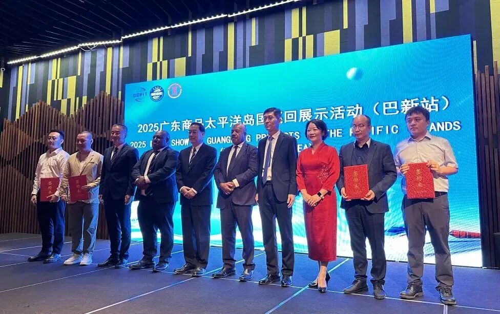 当地时间11月24日,由中国国际贸易促进委员会广东省委员会主办的“2025广东商品太平洋岛国巡展(巴新站)”在巴布亚新几内亚莫尔兹比港希尔顿酒店隆重开幕。广东省委常委王曦率领代表团出席,中国驻巴新大使杨晓光、广东贸促会代表团,以及巴新商业与贸易部长达基、首都区省长帕科普等嘉宾共同见证了此次盛会。此次巡展旨在进一步深化广东与巴新在经贸、投资与文化交流方面的合作。
